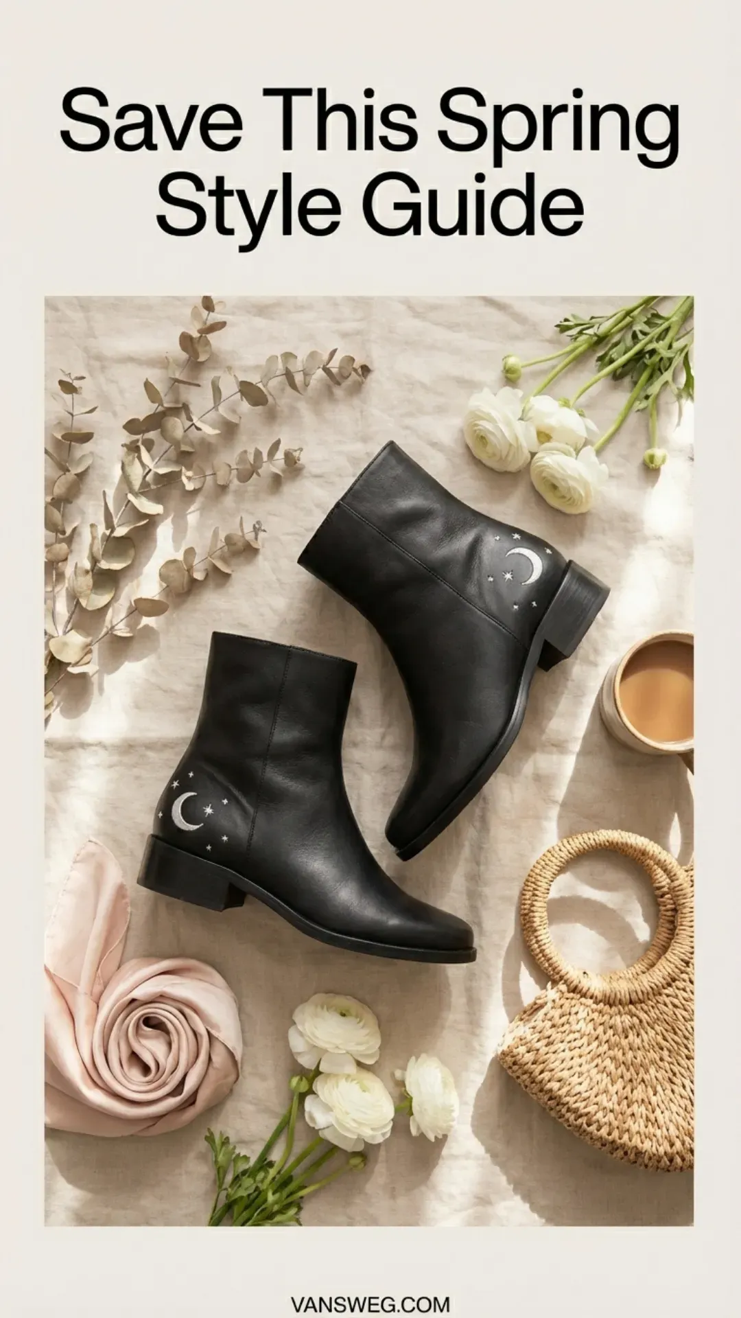 One of the standout trends for Spring 2026 is the rise of Western-Goth styling. Look for black boots with a subtle cowboy heel and a sharp, witchy toe. Paired with an oversized linen shirt or relaxed tailoring, the look feels cool, unexpected, and surprisingly wearable.