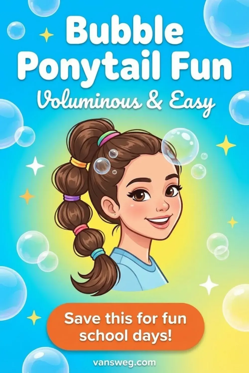 Start with a high ponytail, then add elastics every couple of inches down the length. Gently pull each section to create “bubbles.” It’s fun, trendy, and stays put all day.