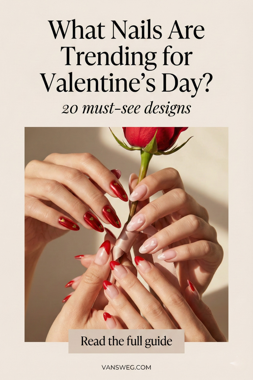 In this blog, I’ve rounded up 20 Valentine nail designs that are trending, timeless, and totally Pinterest-approved. Whether you love subtle details or statement nails, short or long lengths, classic or modern styles, there’s something here to match your vibe. These ideas are perfect for date nights, Galentine’s plans, or just feeling a little more put-together every time you look at your hands.